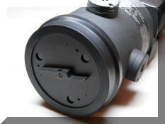 Day Light Lens CoverThe AN/PVS4 is equipped with a Day Light Lens Cover that allows day time sighting in of the units or for daytime operation of the sight. It may be necessary to use this adapter under extremely bright nighttime conditions. The adapter consists of three hole sizes spaced evenly around the periphery, which passes by 3 larger aperture holes and 3 dark glass lenses to allow for 6 different levels of light reduction into the scope.