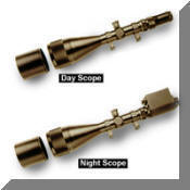 and first objective are blackened. The system includes a 4x lens to use as a Night Vision Monocular and
